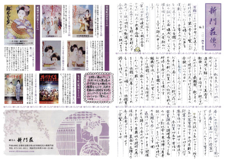 この新門荘便りをお読みになりたいお客様は当館までご請求ください。
