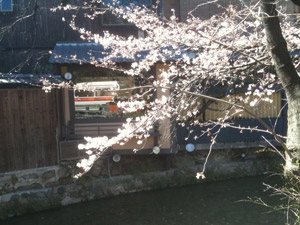 下の写真は、3月30日の祗園白川の吉井勇歌碑前の